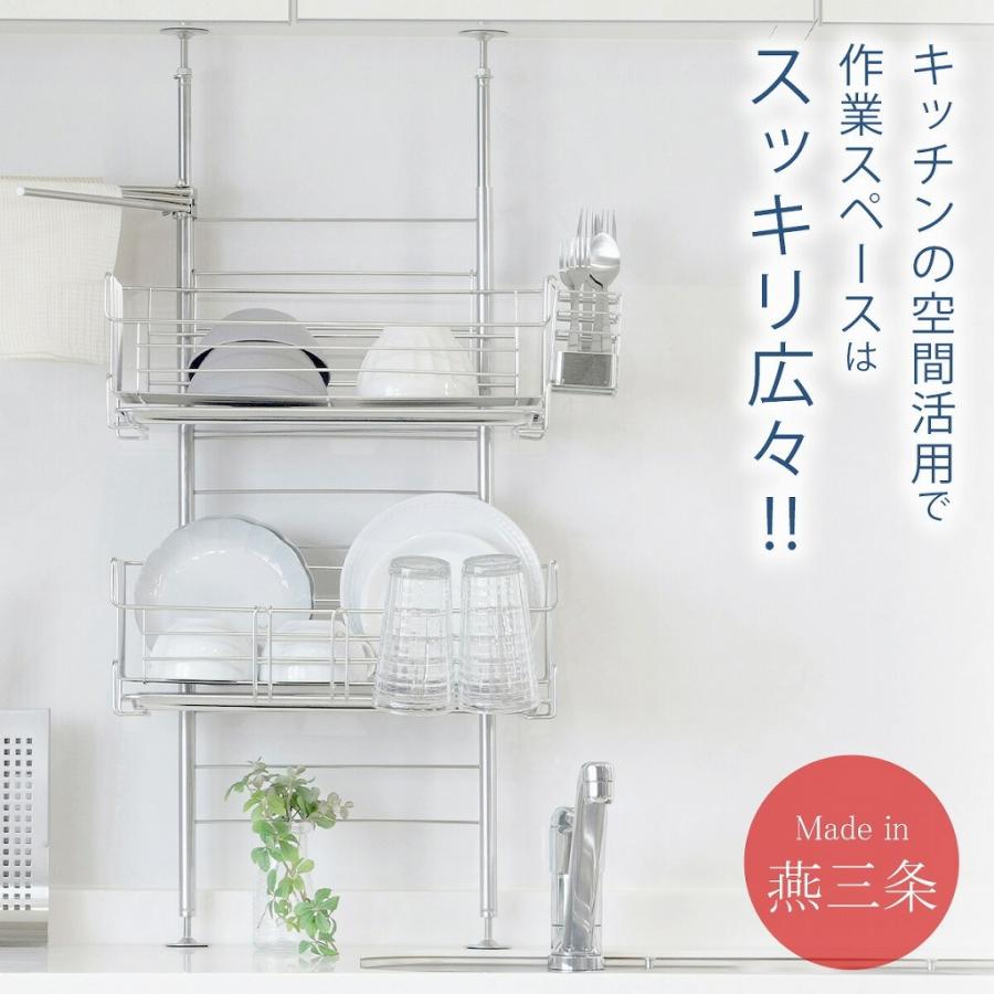 TSUBAME つっぱり 水切りラック 2段 日本製 水切りバスケット ステンレス 頑丈 丈夫 清潔 スッキリ 下村企販 水切り 水切りラッ
