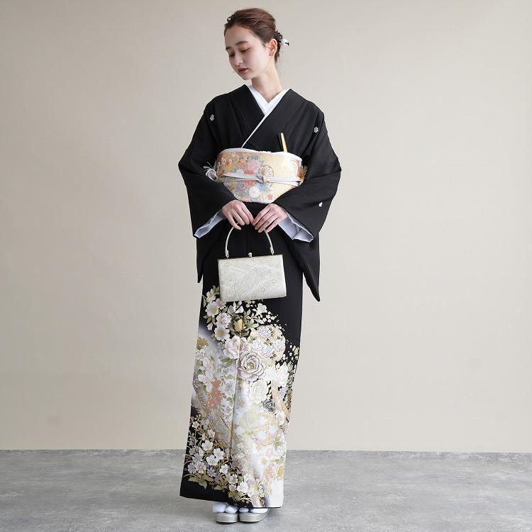 黒留袖 レンタル 桂由美 留袖 21点セット 着物 フォーマル 第一礼装 結婚式 母親 KOTOHOGI ことほぎ 牡丹 バラ ※2023年10月〜11月中旬までご予約空きなし